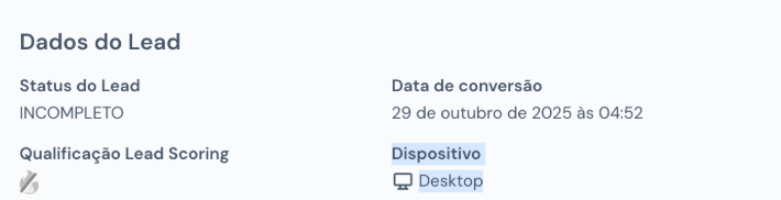✨Novidade✨: Saiba de qual dispositivo (Desktop ou Mobile) seu lead converteu, direto nos Dados do Lead.