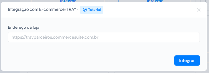 - Em seguida na aba Integre seu E-commerce, localize a logo da Tray e clique em Integrar: