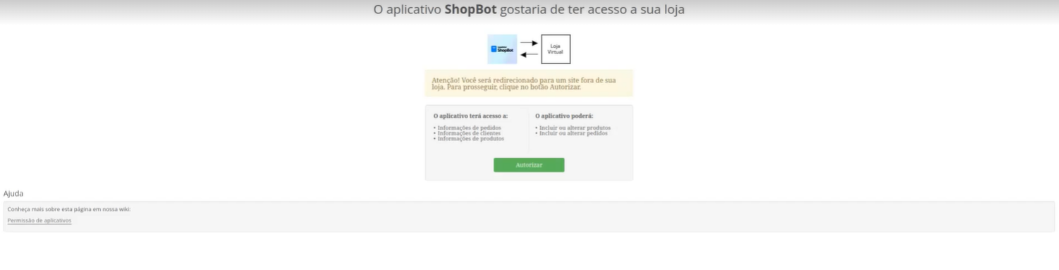 - Após esse processo, na primeira vez que integrar um novo pop-up será exibido, solicitando a permissão da integração. Basta clicar em Autorizar.