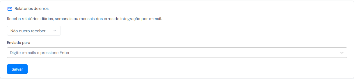 Agora você pode receber relatórios de leads que tiveram erro de integração diretamente no seu e-mail, diariamente, semanalmente ou mensalmente!
