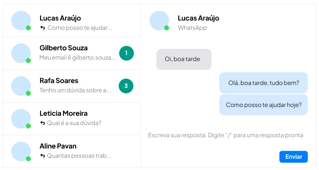 Centralize todos os atendimentos do seu WhatsApp em uma única plataforma, adicione seu número, traga sua equipe e comece a atender imediatamente.