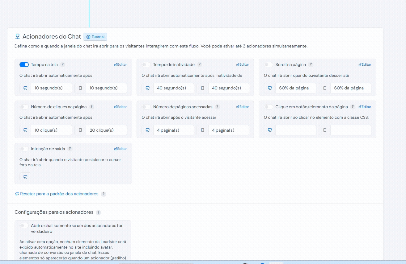 O Acionador por CSS é uma nova forma de personalizar quando o chat da Leadster será exibido no seu site, com base em elementos visuais da página — como botões, seções ou componentes específicos do layout.