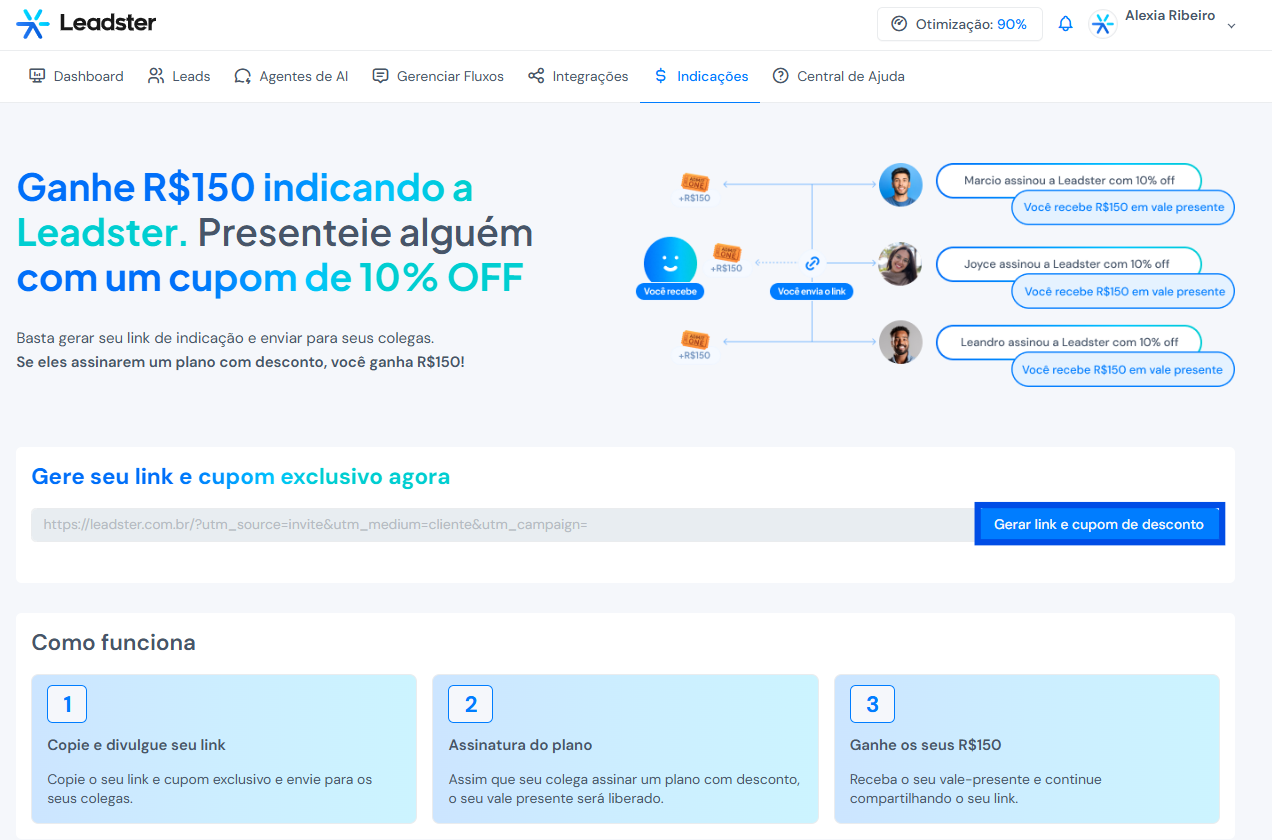 Agora você pode indicar a Leadster para outras empresas e ganhar R$150 em vale-presente a cada nova assinatura realizada com o seu link!