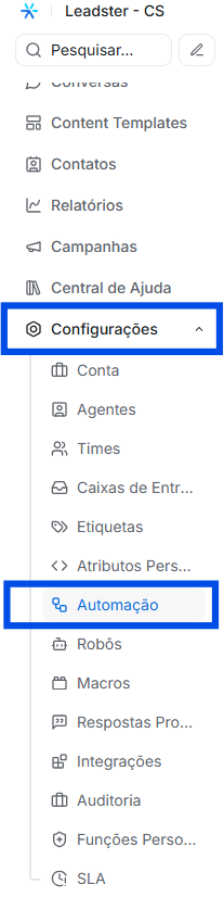 - Acesse o menu lateral e clique em Configurações → Automações.