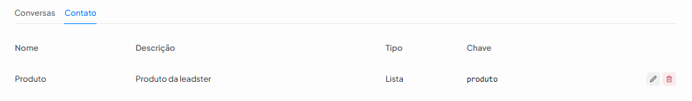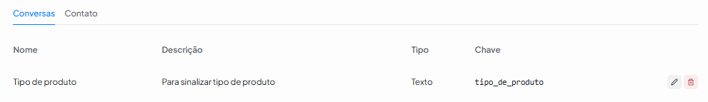 - Chave: É o Identificador interno do atributo. Ex: interesse_lead. Importante: a chave não pode ser alterada depois.