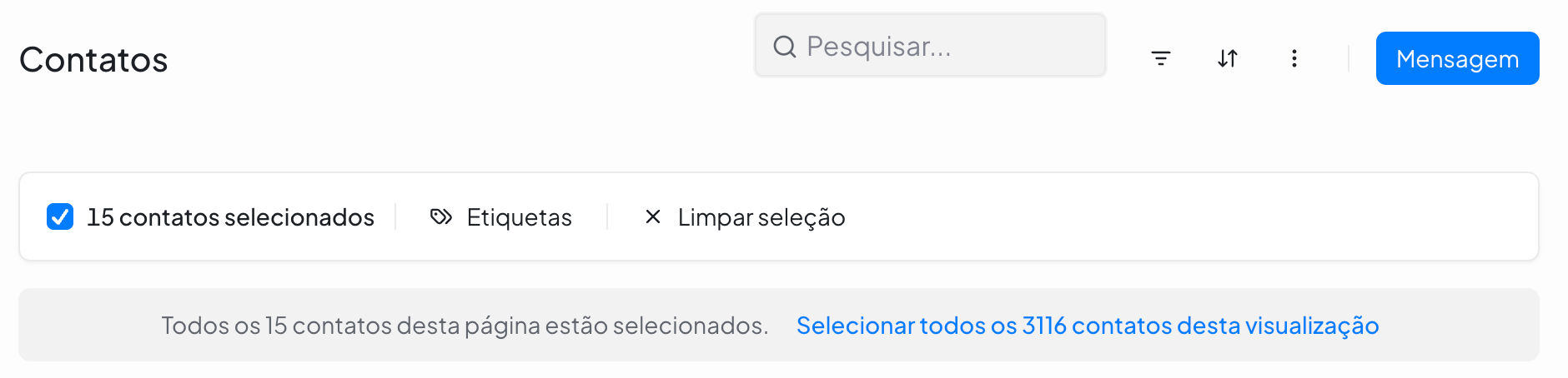 Assim que pelo menos um contato for selecionado, aparecerá uma barra de ações no topo da lista.