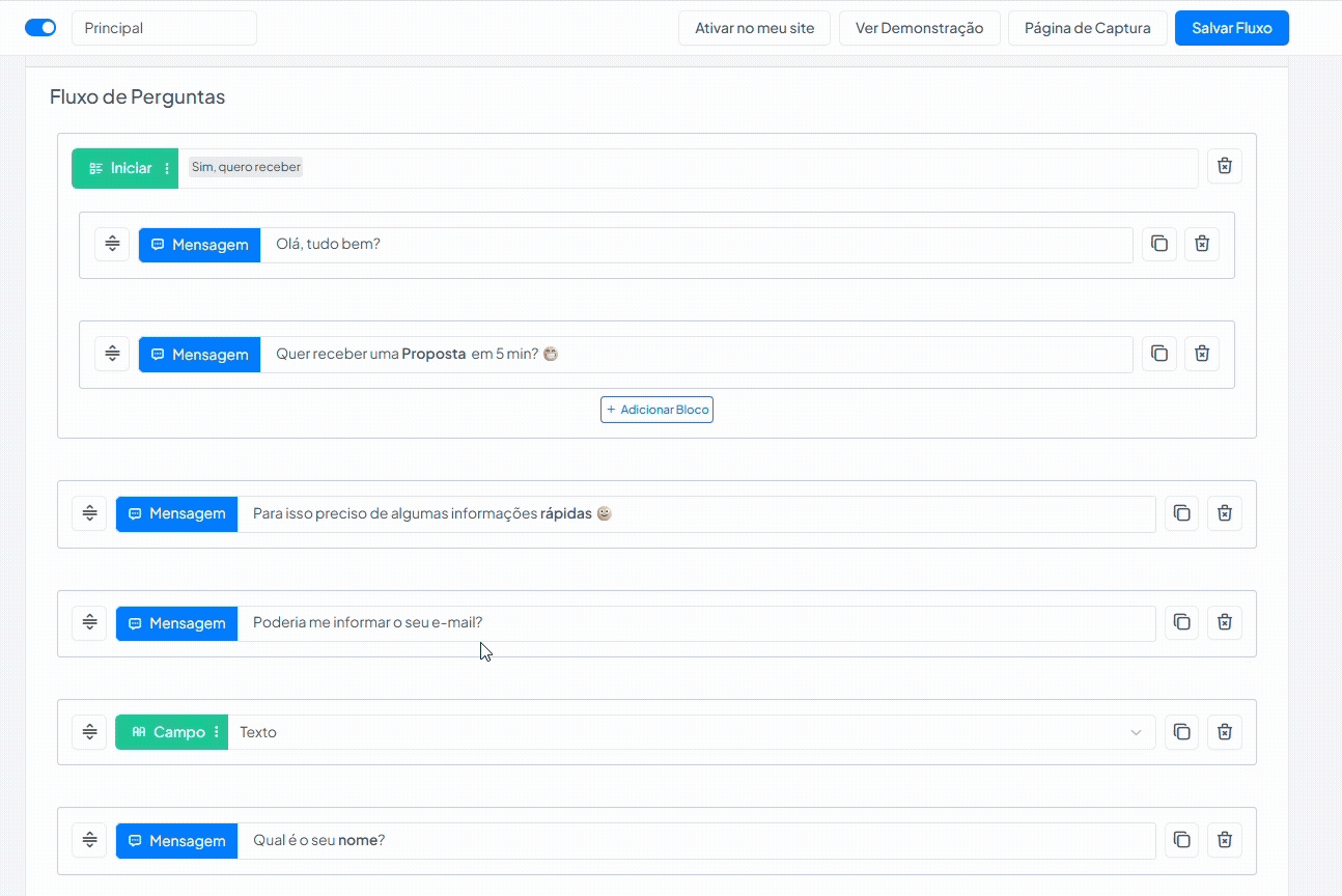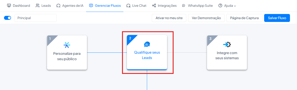 Dentro do fluxo aberto, localize o bloco “Qualifique seus Leads”