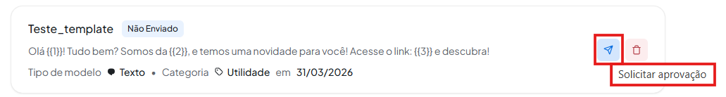 - Solicite a aprovação do template (pela opção indicada na plataforma)