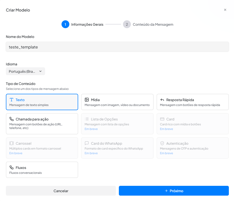 - Após isso, avance para a etapa de conteúdo da mensagem.