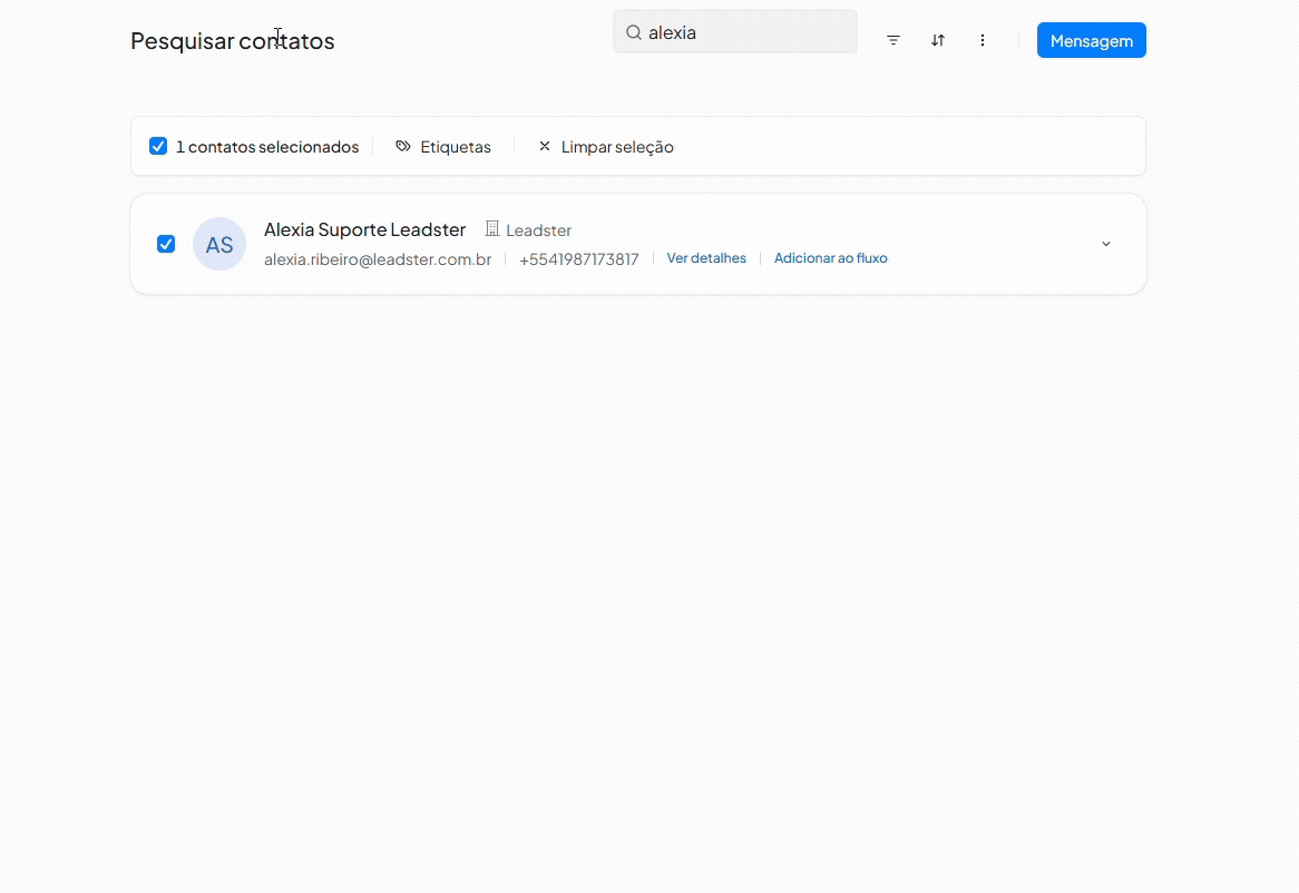 - O dropdown exibe apenas campos que possuem valor preenchido para o contato selecionado. Ou seja, se uma informação não existir (como e-mail, por exemplo), ela não aparecerá como opção.