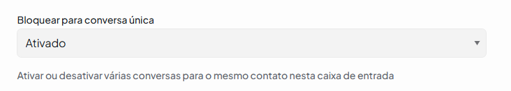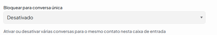 A configuração de conversa única impacta diretamente na forma como os atendimentos são iniciados e organizados dentro da plataforma.
