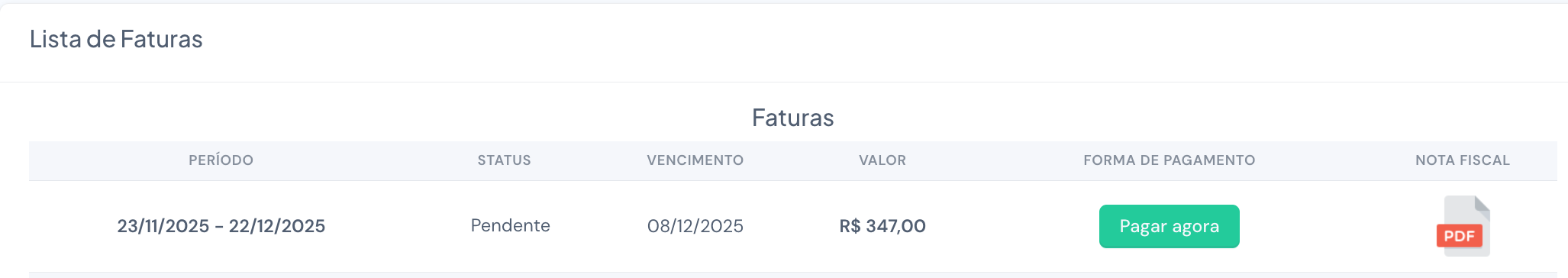 - E as faturas serão exibidas. Basta clicar em "pagar agora" e será direcionado para a plataforma de pagamento:
