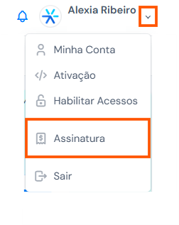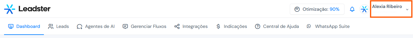 - No canto superior direito da tela, clique sobre o nome do cliente/empresa para acessar as configurações: