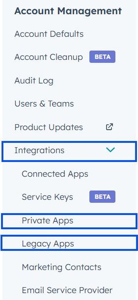 - No menu lateral, vá em "Account Management" (Gestão de contas) e clique em "Integrações".